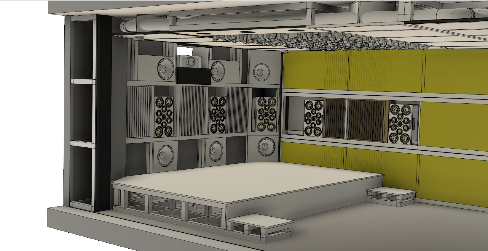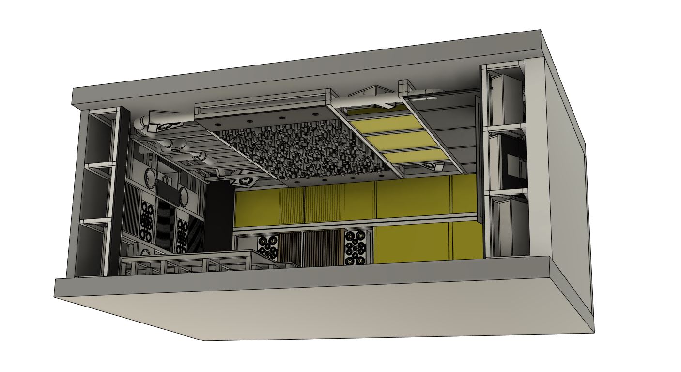 Seitlich und hinten sind insgesamt 8 Skyline S1 verbaut – mit kontrolliert breitem Abstrahlverhalten, perfekt abgestimmt mit 11 zusätzlichen 1D QRD-Diffusoren im Raum.